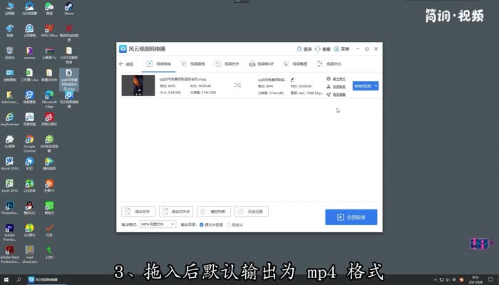 要将mpg格式的视频文件转换成mp4格式,可以使用转换器或者修改扩展名。这里以风云视频转换器为例。具体操作步骤如下: