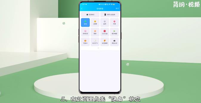5.在此页面点击“隐身”状态,最后点击确定。