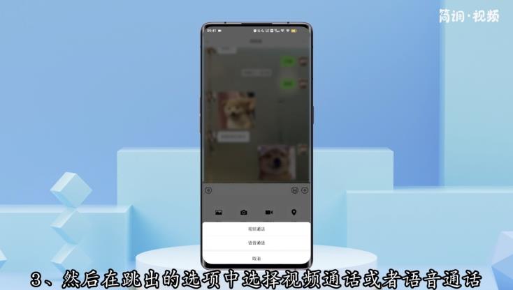 3.然后从弹出的选项中选择视频通话或语音通话,等待对方接听。
