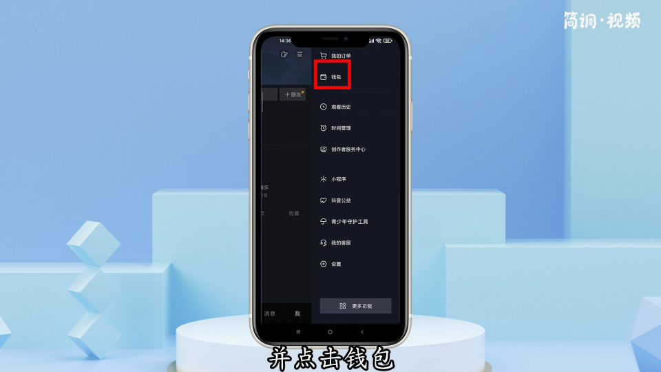 4.再次点击右上角的三条水平线,点击钱包。在钱包界面,可以充值。