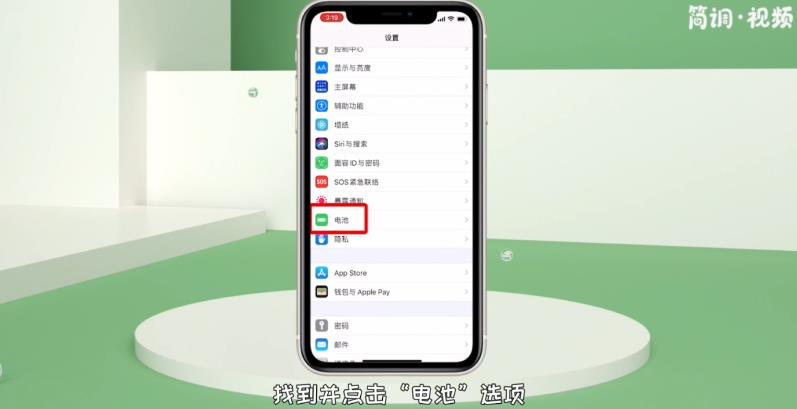 2.在设置页面,找到并点击“电池”选项,进入电池页面;