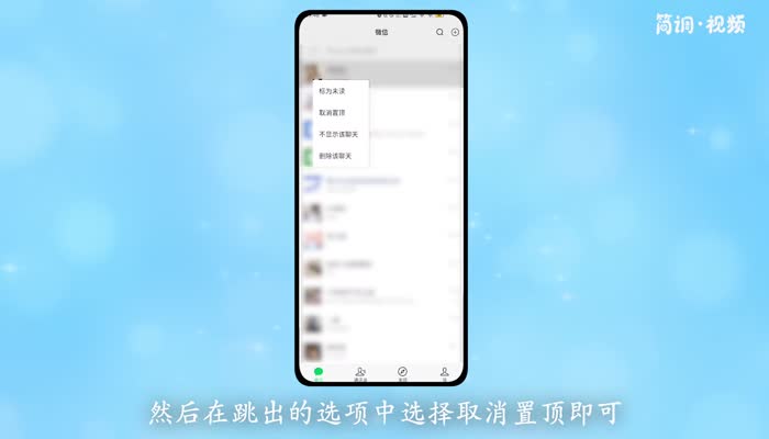 2.长按你的好友,然后在弹出的选项中选择“取消置顶”。