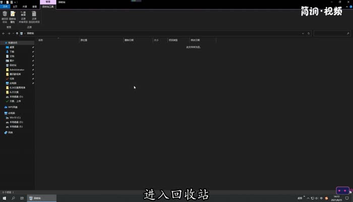 1.双击打开电脑桌面上的“回收站”快捷图标,进入回收站;