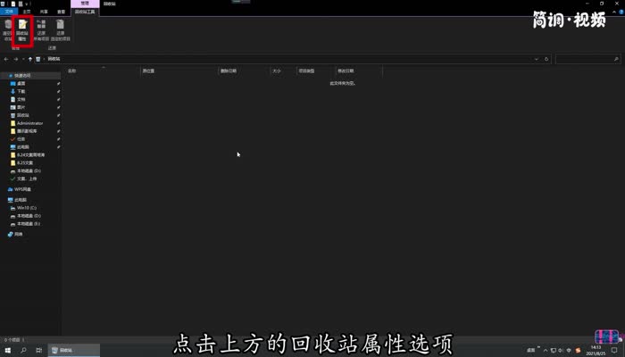 2.进入回收站后,点击顶部的“回收站属性”选项,打开回收站属性窗口;