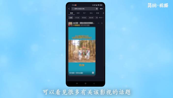 2.在搜索结果中,可以看到很多关于该影视的话题和作者剪辑的一些节选视频;