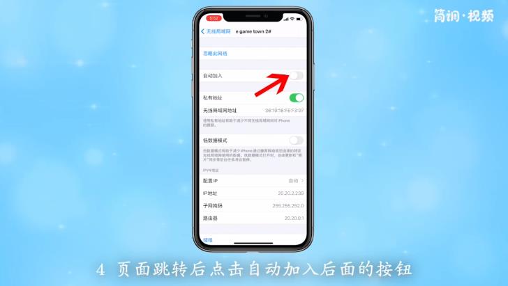 4.页面跳转后,点击“自动加入”后面的按钮打开。下一次,手机会自动连接到无线网络。