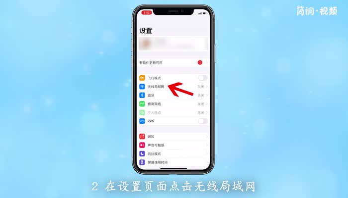 2.在设置页面点击“WLAN”,进入后打开WLAN后面的按钮;