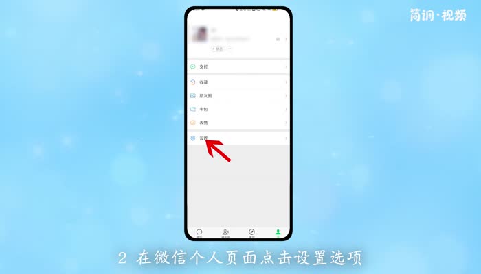 2.点击微信个人页面的“设置”选项,进入设置页面;