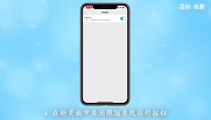 4.在新页面中关闭“跟随系统”后的按钮,然后勾选“黑暗模式”,那么苹果微信就会被设置为黑暗模式。
