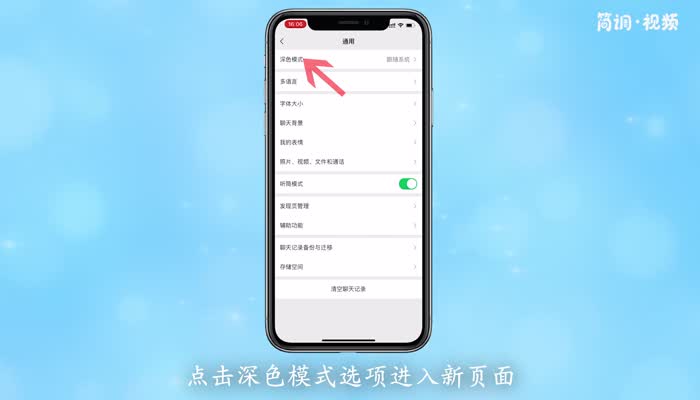 苹果手机微信想切换到黑暗模式。可以点击常规设置页面中的黑暗模式选项进行操作。具体流程如下: