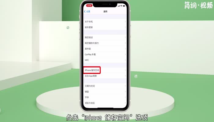 2.进入通用页面后,点击“iPhone存储空间”选项;