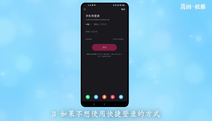 3.如果不想用快速登录方式,输入手机号,点击获取验证码;