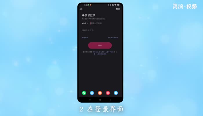 2.在登录界面,点击底部的微信、qq等图标,快速登录;