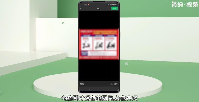 4.点击朋友圈界面右上角的相机图标,点击“从相册中选择”,勾选刚刚保存的图片,点击完成;