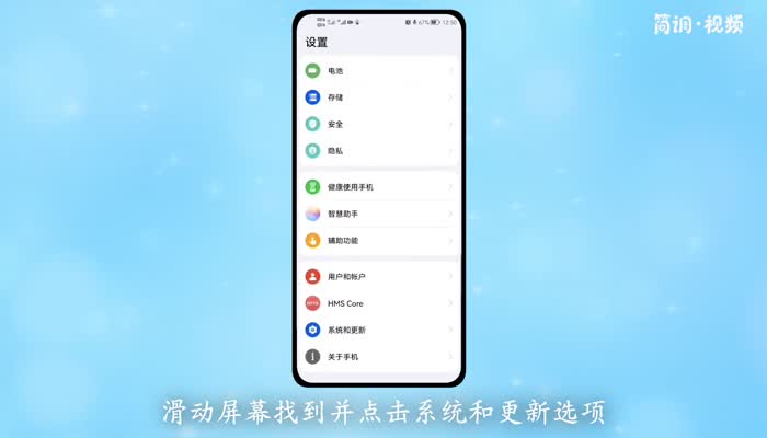 2.进入设置页面后,滑动屏幕找到并点击“系统和更新”选项,进入系统和更新页面;