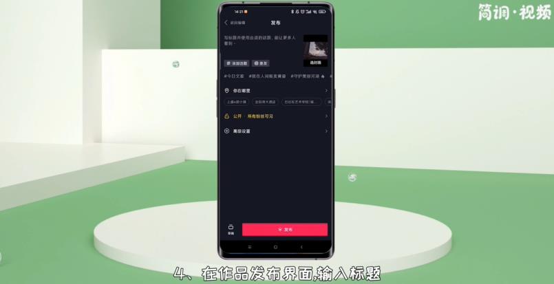 4.在作品发布界面,输入标题,添加题目等。最后点击“发布”将作品发布到Tik Tok。