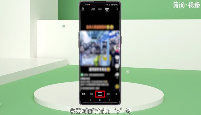 2.回到Tik Tok的首页,点击页面下方的" ",然后点击相册选项,选择刚刚保存的日常作品;