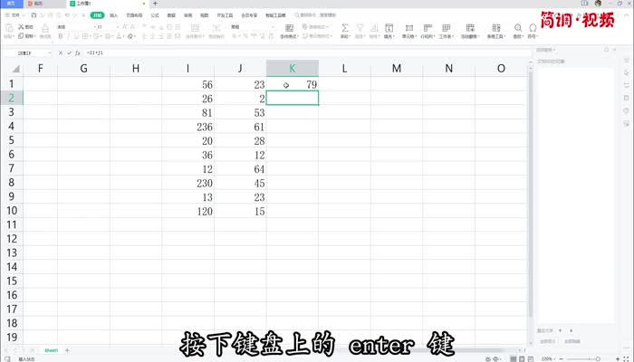 1.打开表格,然后在对应的单元格中输入求和公式:=A1 B1(只需输入要计算的单元格范围);