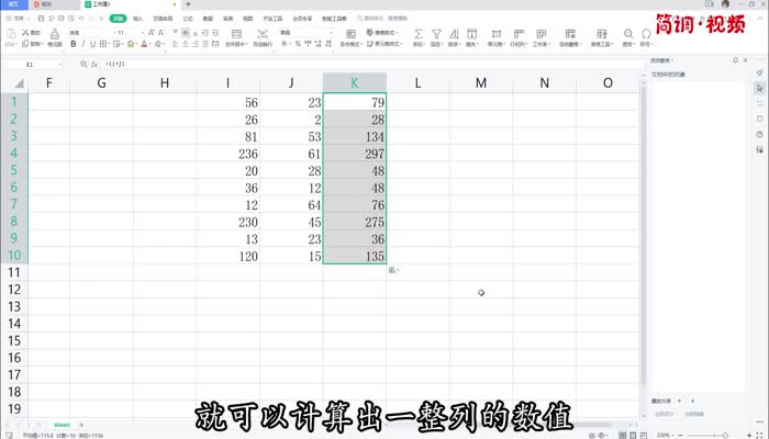 4.到达适当位置后松开鼠标,就可以计算一整列的值,并对整个垂直列求和。