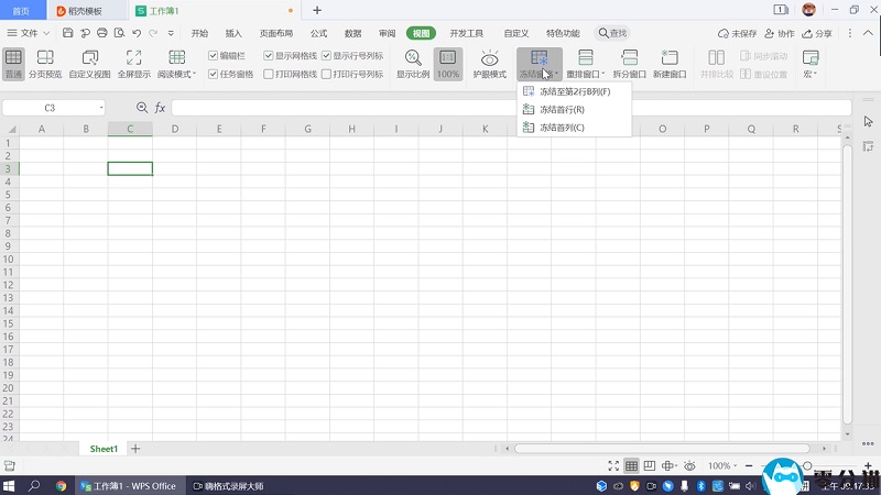 2.然后,单击菜单栏中的视图,单击冻结窗格,并选择冻结到第二行中的B列。