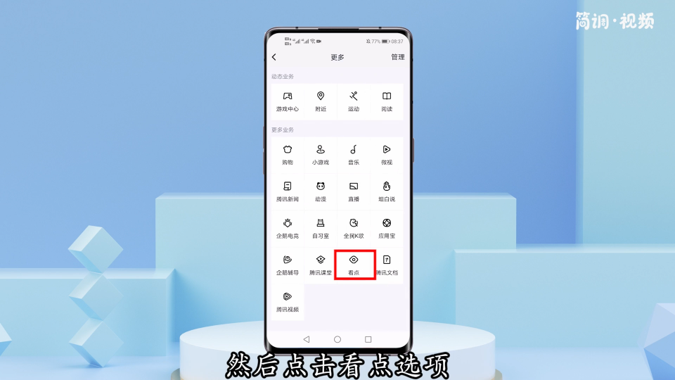 2.点击页面中的“更多”选项,再点击“看点”选项,进入QQ看点页面;