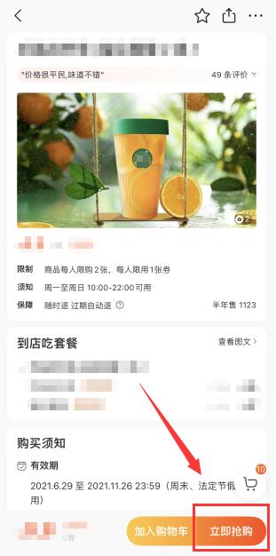 在美团上打开需要购买的商品,点击右下角的“立即购买”按钮。