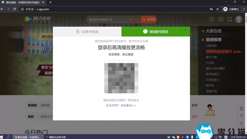 手机上的腾讯视频无法扫描登录,只能在电脑上看。