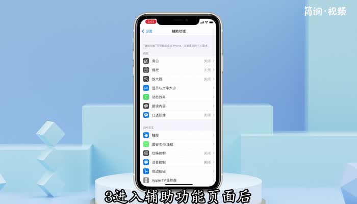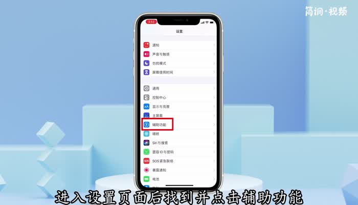 2.进入设置页面后,找到并点击“辅助功能”进入辅助功能页面;