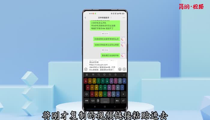 3.在微信中任意打开一个对话框,将刚刚复制的视频链接粘贴进去,在电脑上同步登录账号;