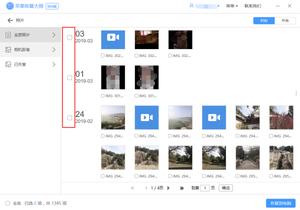 扫描完成后,选择需要恢复的视频,点击“导出所选记录”即可恢复视频。由于iTunes和iCloud都是手机的全机备份,一般不可能将某一类数据单独导出到电脑上,所以也可以使用Apple Recovery Master分别导出iTunes和iCloud备份中的数据。
