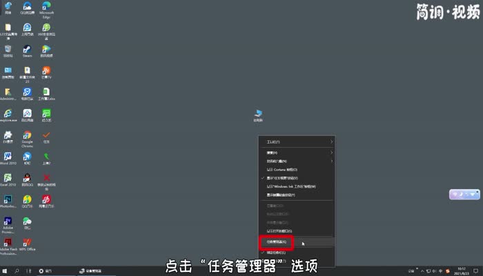 2.在弹出的菜单中,点击“任务管理器”选项;