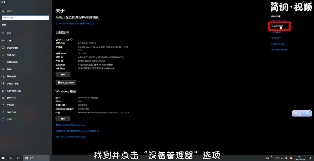 2.进入属性页后,找到并点击“设备管理器”选项;