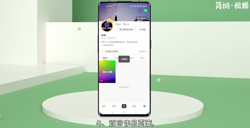 3.在作品页面,点击右下角的“更多”选项,在弹出的窗口中点击“删除作品”,然后点击“确认删除”。
