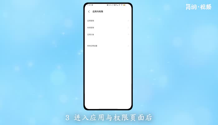 2.进入设置页面后,将屏幕滑动到底部,然后点击“申请和权限”选项;