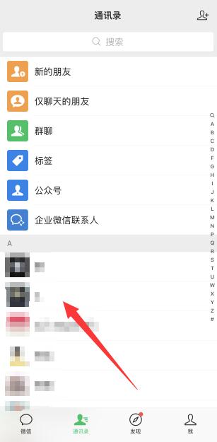 如果有共同好友,让对方打开微信通讯录,点开好友。