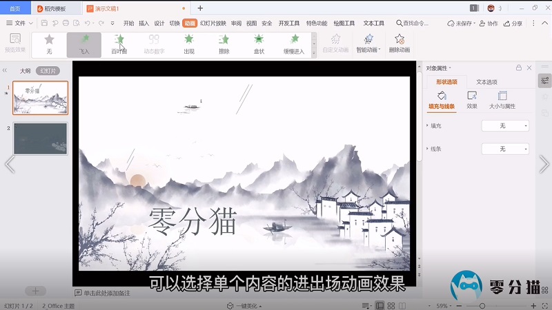 8.单击动画选择单个内容的动画效果。