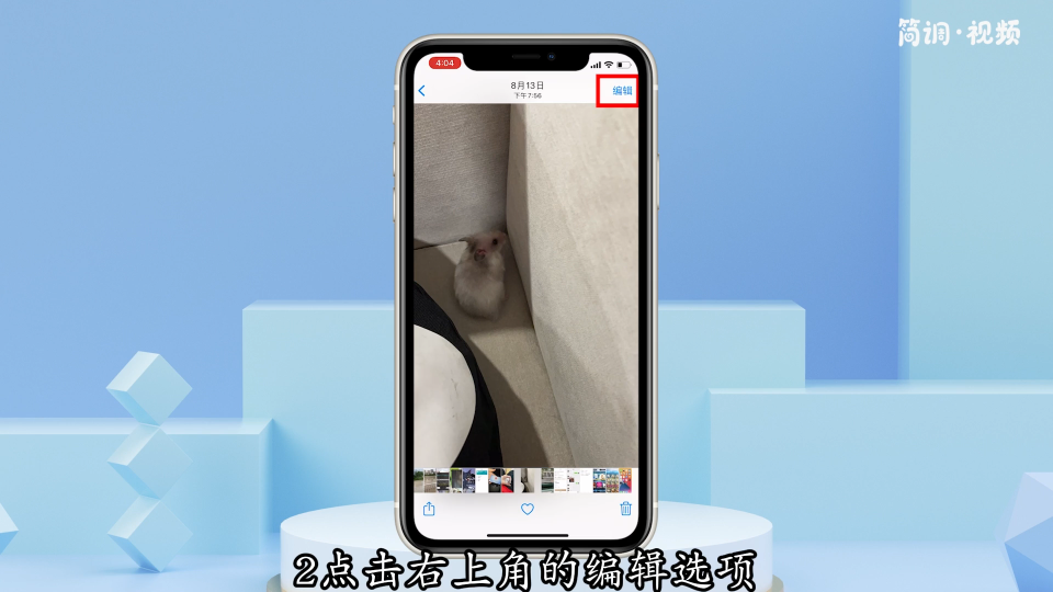 2.点击右上角的“编辑”选项,进入照片编辑页面;