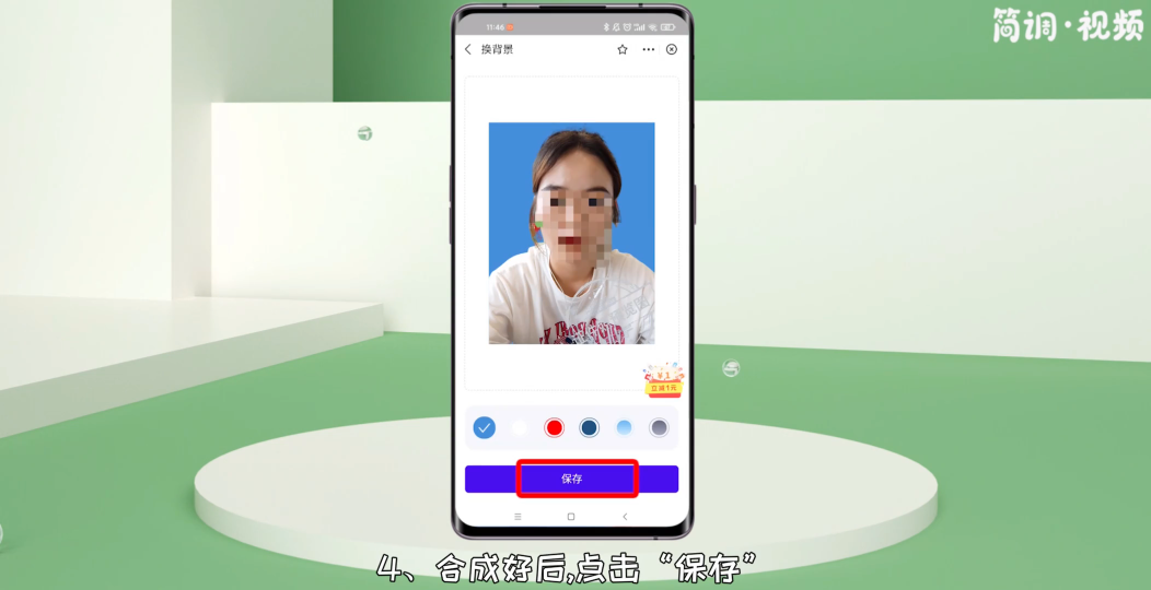 4.导入照片后,点击“背景”选项,选择“蓝色”背景,点击“下载”,进入相册查看。