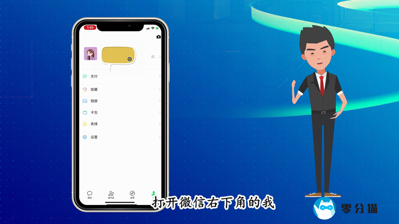 在微信右下角打开我,点击我的头像,进入我的个人资料。然后点击“轻拍”。