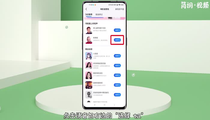 3.进入后可以看到所有的导航声音,选择一个自己喜欢的,点击语音包右侧的“选择TA”即可更换导航声音;