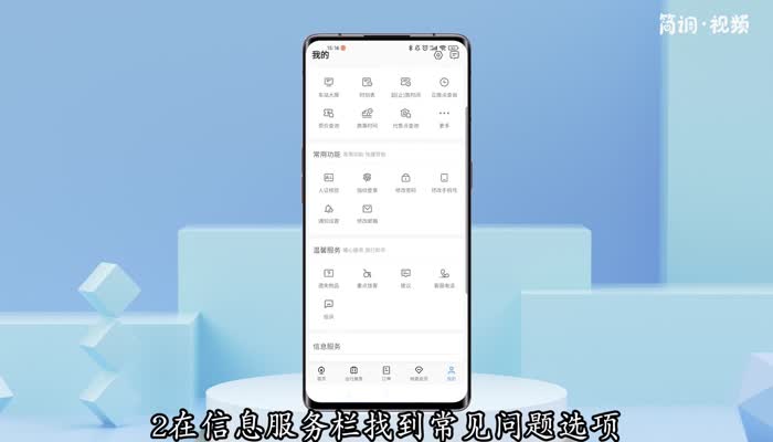 2.在“信息服务”一栏,找到“常见问题”选项,点击进入;