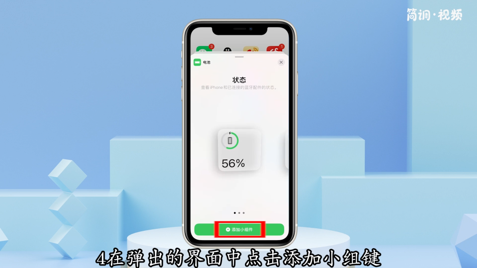 4.在弹出的界面中点击“添加Widget”,返回页面可以看到电的百分比。