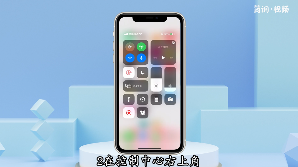 1.打开手机,滑动刘海平头部右侧的屏幕,进入控制中心;