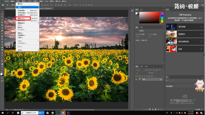 1.进入ps,打开要修改的照片,点击“图像”中的“图像大小”;