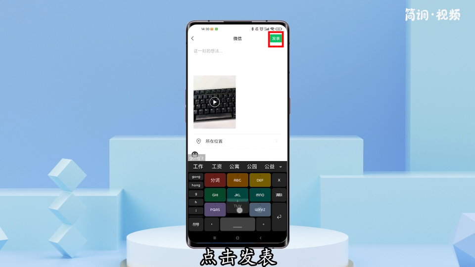 5.然后选择分享到朋友圈。填写标题后,点击发布,好友就可以看到自己的视频号了。
