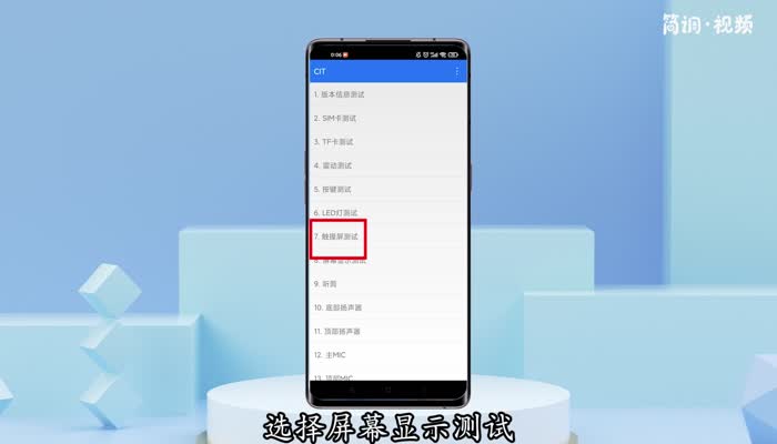 2.选择“屏幕显示测试”来校准触摸屏。系统提示后,可以自动校准屏幕。