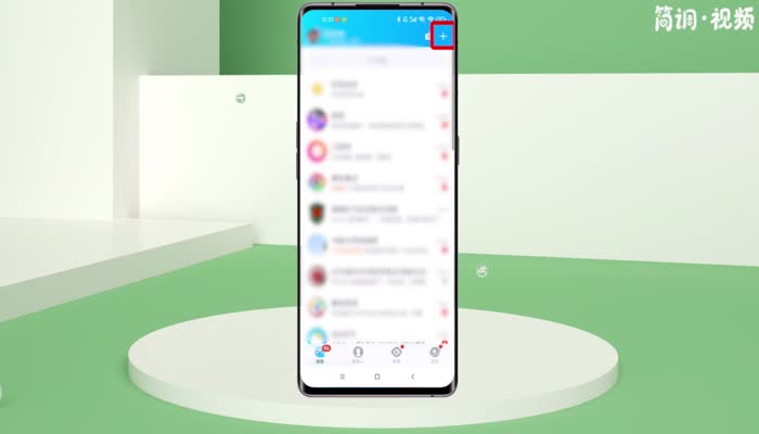 2.进入手机qq,点击右上角的“”图标,点击“面对面”;