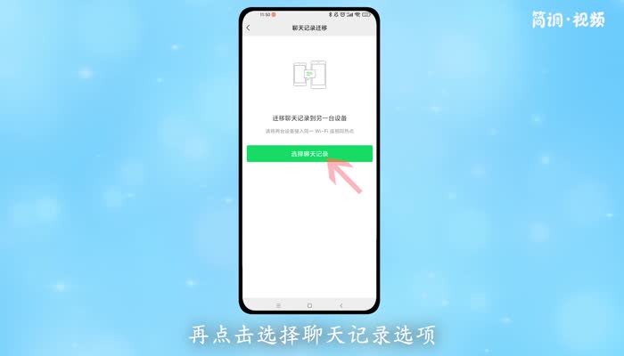3.进入后,点击“将聊天记录迁移到另一台设备”,然后点击“选择聊天记录”选项;
