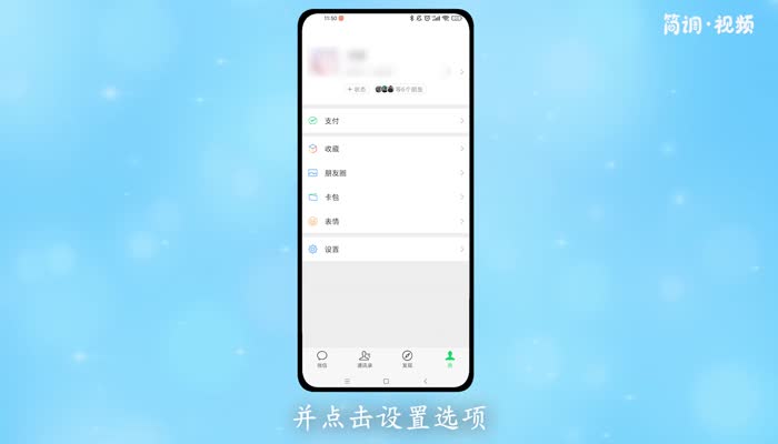 1.打开微信,切换到“我”界面,点击“设置”选项;