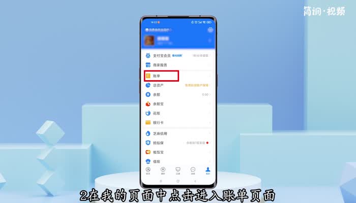 2.在“我的”页面,点击进入“账单”页面,会弹出所有账单明细;